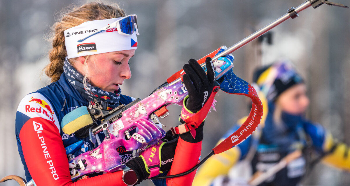 - Do úvodního 15kilometrového závodu se čtyřmi položkami vyběhne v červeném bezchybná vítězka úvodního individuálu loňské sezóny v Östersundu Markéta Davidová (číslo 28). Předloni si v Kontiolahti připsala tři trestné minuty a skončila 21.